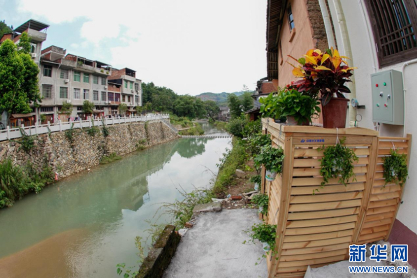 右侧为村居外安装的溪水源热泵,夏季可直接汲取转化坦洋溪水中的低温能源,为村居制冷。新华网 肖和勇 摄
